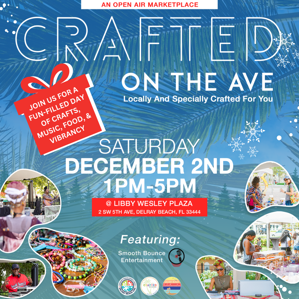Crafted On The Ave. is brought to you by the Delray Beach Community Redevelopment Agency. Our objective with this pop-up, outdoor market is to revitalize the 5th Avenue corridor into the thriving area that it once was and offer visitors information about the exciting CRA Projects happening just steps away from Libby Wesley Plaza. Crafted on the Ave. is a place where local small and micro businesses can promote and sell their products. Craft vendors are creators of handmade products,art, apparel, accessories, jewelry, hair and body care, and more.