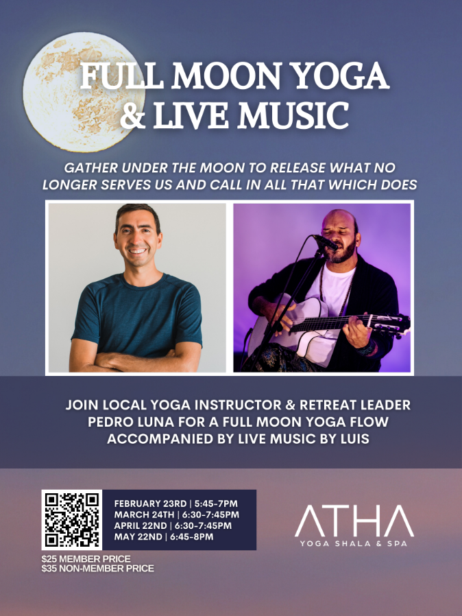 A Full Moon Yoga Flow led by Pedro Luna accompanied by Live Music by Luis Von. We will gather under the stars and the moon in the beauitful garden to release what no longer serves us as we call in all that we need, want, or desire in the new year.