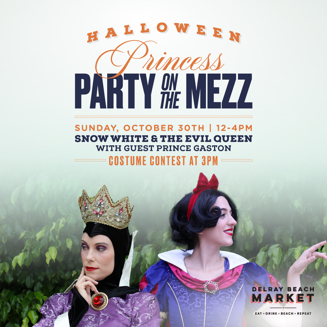 Join us at the Delray Beach Market on Sunday, October 30th for a special Halloween edition of Princess Party On The Mezz. This Sunday we will be featuring a live performance from Snow White and The Evil Queen, followed by a guest appearance from Gaston from Beauty and The Beast. Get ready for your child to live out a fairytale experience like they never have before. Each ticket is $40 and includes a Meet & Greet with the Princesses, Arts and Crafts, Trick or Treating, Halloween Games, and a Special Halloween Costume Contest at 3 PM. It’s time to let the magic begin!