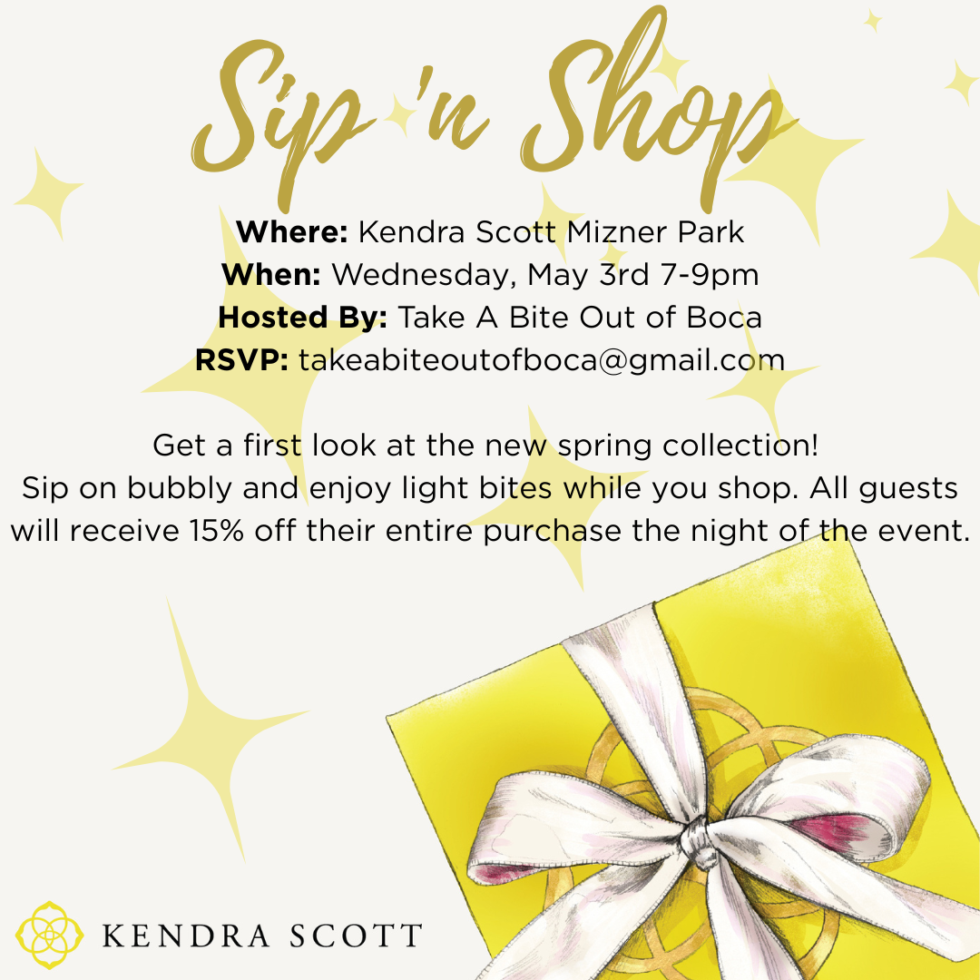 Just in time for Mother’s Day! Celebrate Kendra Scott’s new Spring Collection at the Boca Raton store located in Mizner Park. All guests will receive 15% off all purchases made during the event. Sip on bubbly and enjoy light bites from Kapow Noodle Bar, cheese and charcuterie while you shop.