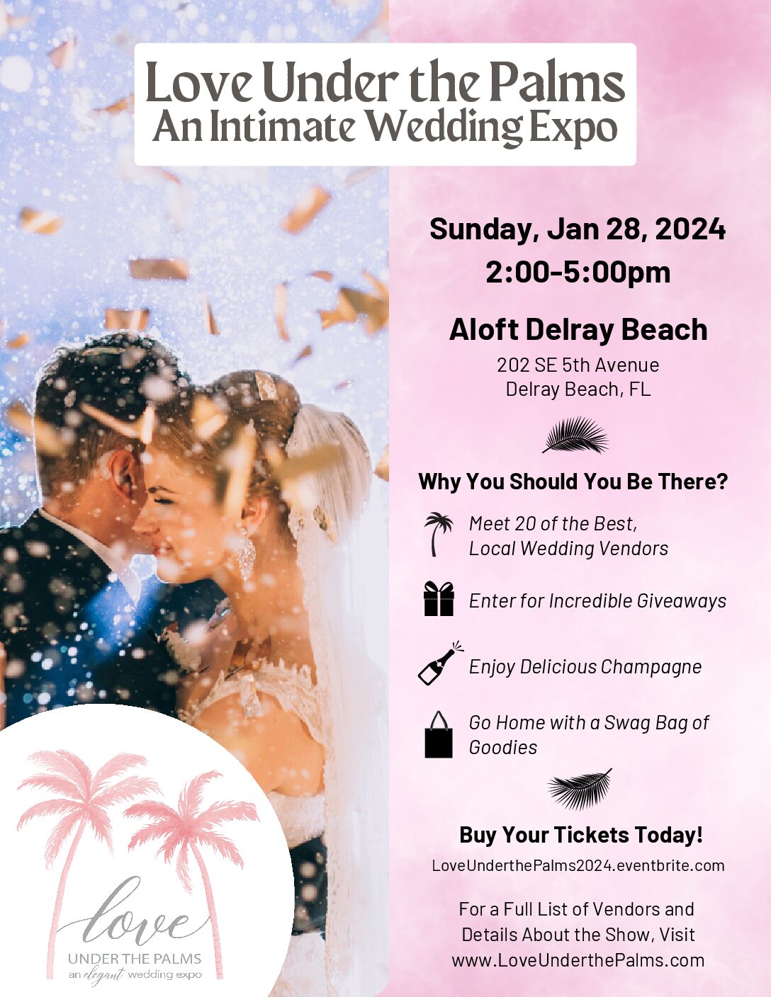 Join us for our Love Under the Palms: An Elegant Wedding Expo in West Palm Beach! This wedding show offers an intimate opportunity for couples to meet the most exclusive wedding vendors in the Palm Beach area.
