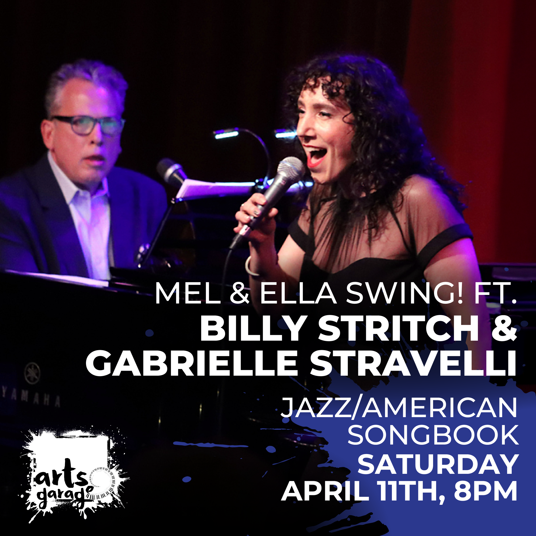 Iconic singer/pianist Billy Stritch and acclaimed vocalist/songwriter Gabrielle Stravelli combine their considerable talents for an evening of great music celebrating the legendary Mel Tormé and Ella Fitzgerald. The show includes beloved favorites from the Great American Songbook (The Man I Love, A Nightingale Sang in Berkeley Square, Cheek to Cheek, and swinging jazz standards (Too Close for Comfort, Oh, Lady Be Good!) These two performers have brought their magic to stages all over the world and together bring an incredible knowledge and feel for this great music.