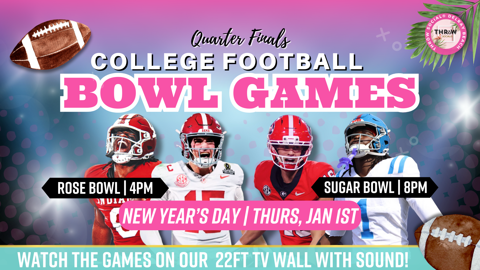 Join us New Year’s Day for the College Football Playoff Quarterfinals streaming LIVE with SOUND on our massive TV wall