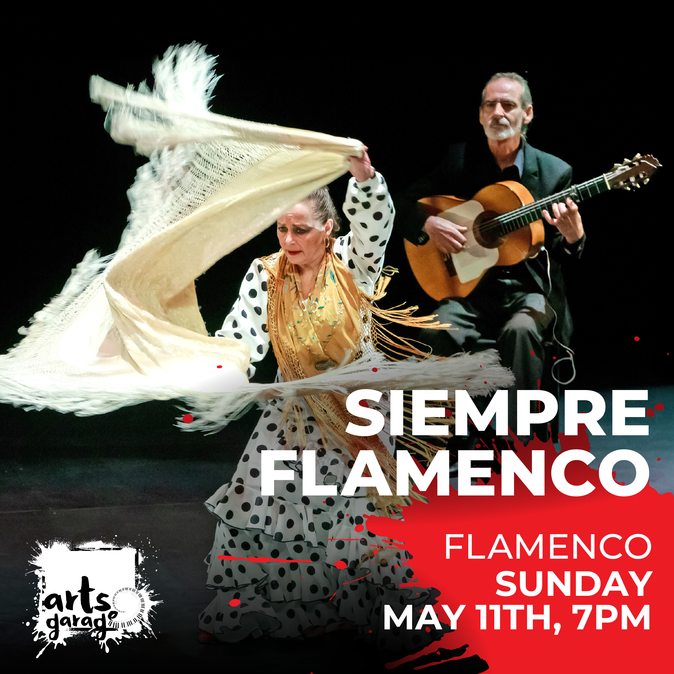 Siempre Flamenco returns to Arts Garage with a powerful new show featuring an international cast of flamenco musicians and dancers. From the joyous Guajiras and Tanguillos, to the lament of the Soleares and the compelling Alegrias, the trilogy of guitar, song and dance is in constant dialogue, and the spontaneity of conversation is interpreted by the intricate rhythms of flamenco. Moving and mesmerizing, the passion that emanates from flamenco song unites with the intricate fury of dance in an unforgettable performance.