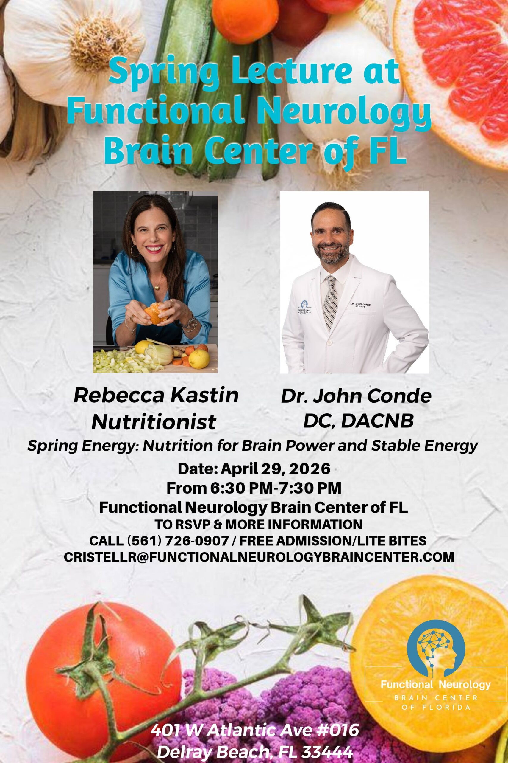 Join us in person for an insightful talk all about how the right foods can boost your brainpower and keep your energy steady throughout the day. Going beyond basic nutrition, this presentation will introduce a functional neurology perspective—highlighting how targeted dietary strategies can directly influence brain networks involving the cerebellum, frontal lobes, and autonomic nervous system improving treatment outcomes. Whether you’re a patient, professional, or just curious, you’ll leave with practical tips to fuel your mind and body. Don’t miss out on this chance to learn how to eat smart for sharper thinking and lasting energy!