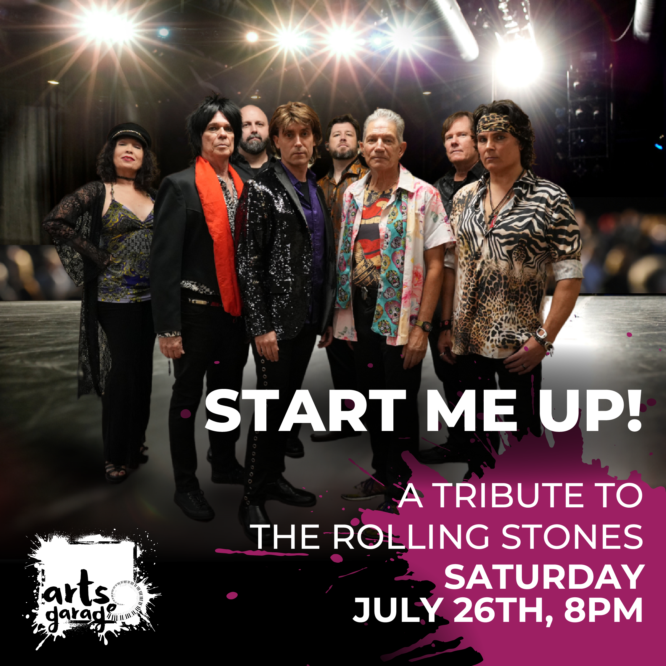 The moves, look, energy, sound, and even the gear of Start Me Up! are reminiscent of being at an actual Rolling Stones concert. Start Me Up! doesn’t just play the Stones, they recreate the Stones. From the moment the band takes the stage to the final song, audiences are on their feet dancing and singing along to dozens of timeless Rolling Stones anthems and even some of their most recently released hits. Once you see Start Me Up! you’ll never want to stop.