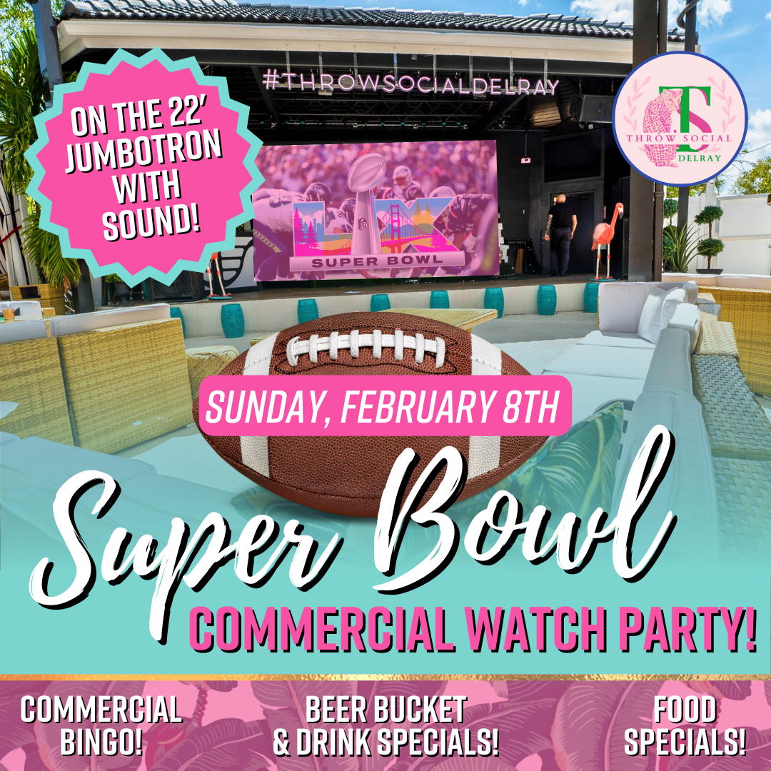 ONLY here for the COMMERCIALS? Same! Join us for Super Bowl 2026 on a massive 22 FOOT JUMBOTRON with sound, plus our fan-favorite Commercial Bingo game—FREE