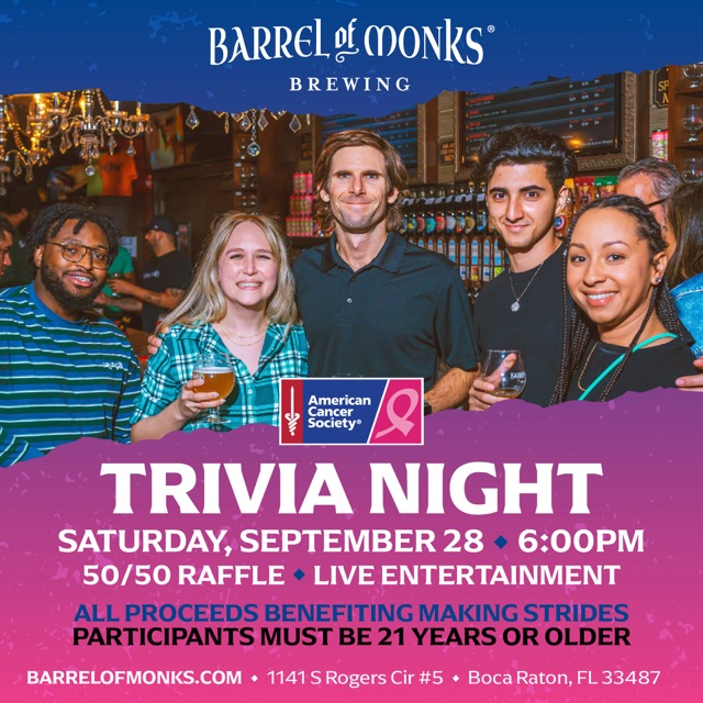 Get your trivia hats ready and join us for an exhilarating Trivia Night on Saturday, September 28th at 6 PM! We will also be hosting a 50/50 raffle that you’ll have a chance to win! But that’s not all—after the trivia, enjoy some fantastic live entertainment