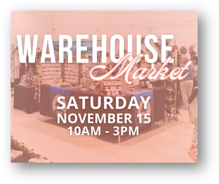 Join us at the Arts Warehouse for our annual indoor market. The Warehouse Market is carefully curated to feature a variety of vendors with their unique products and goods. Perfect for pre-holiday shopping while supporting local artists and artisans!